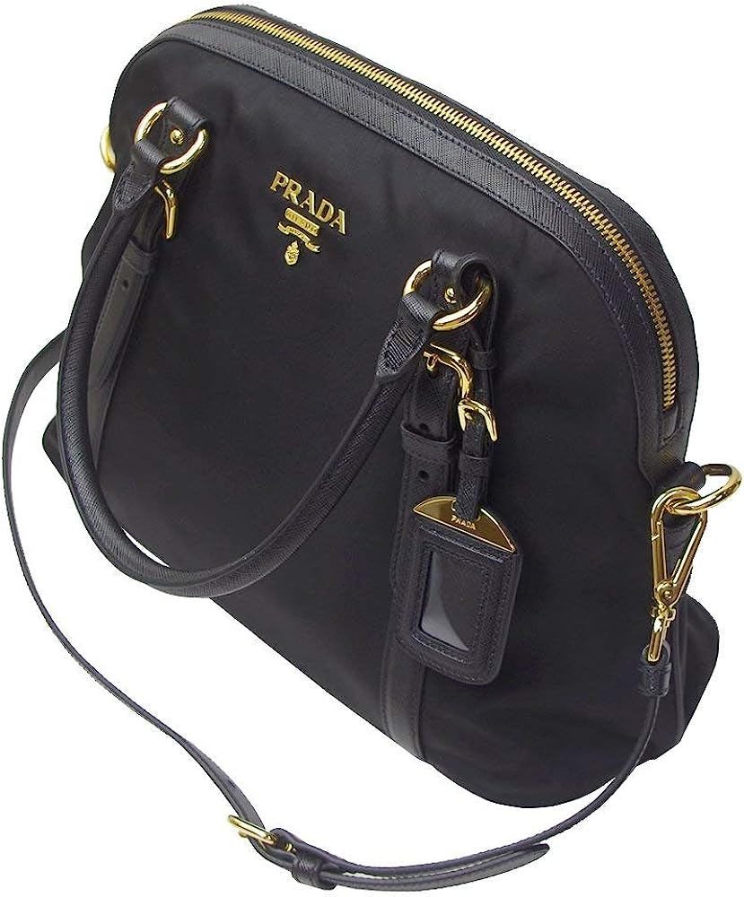 Gold hardware and gold Prada logo featured on the front.