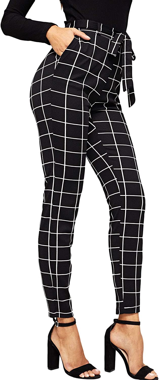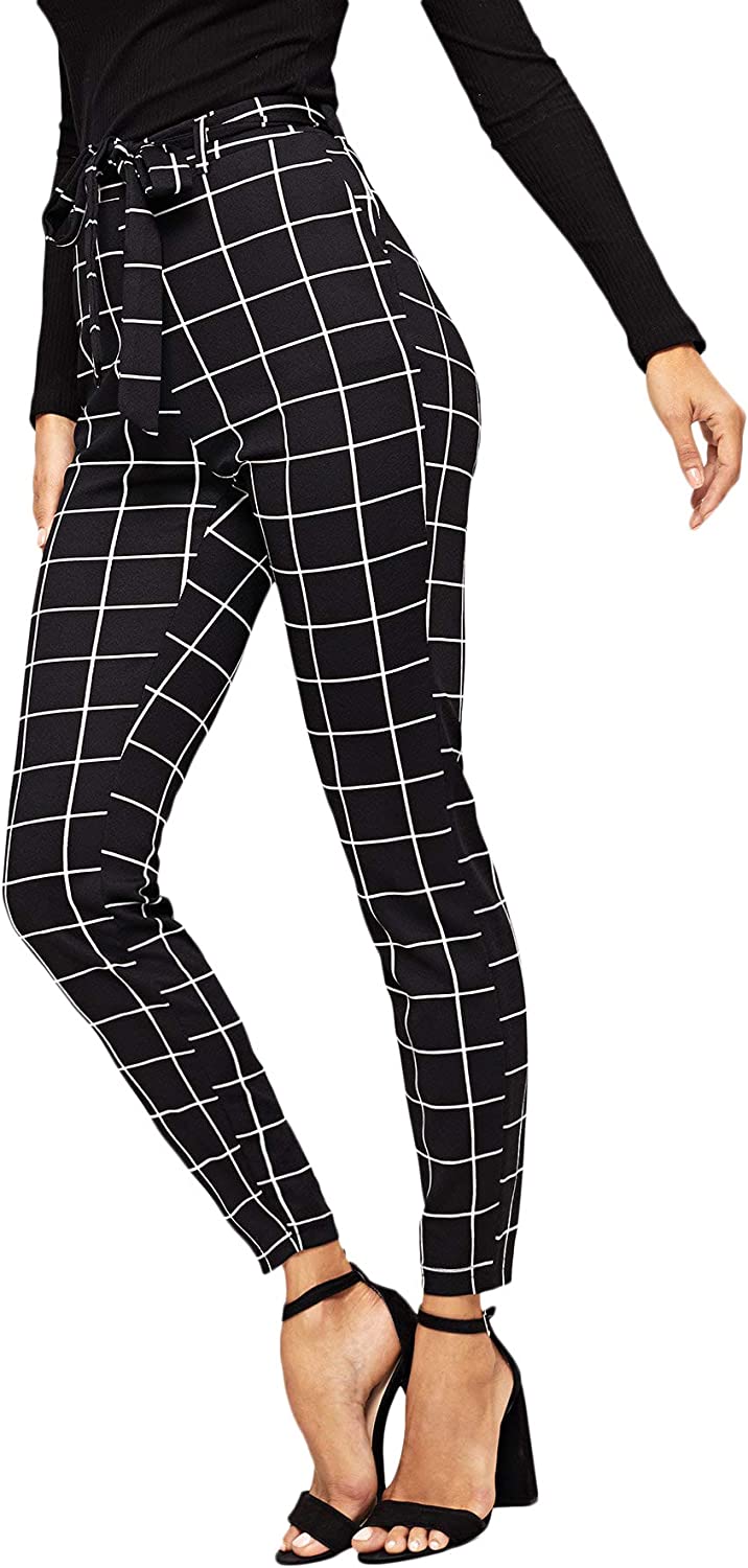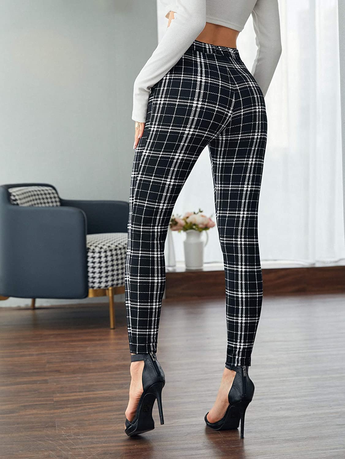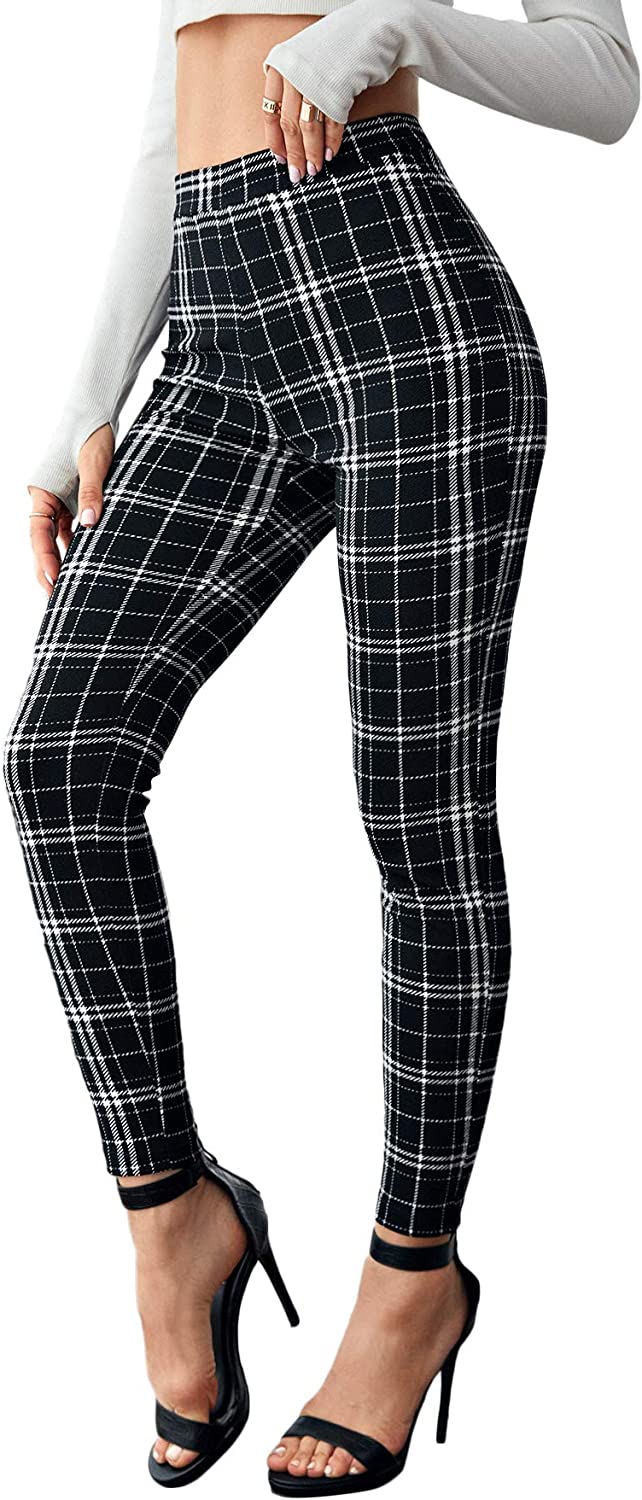 WDIRARA Women's Stretchy Plaid Print Pants Soft Skinny Regular Fashion Leggings