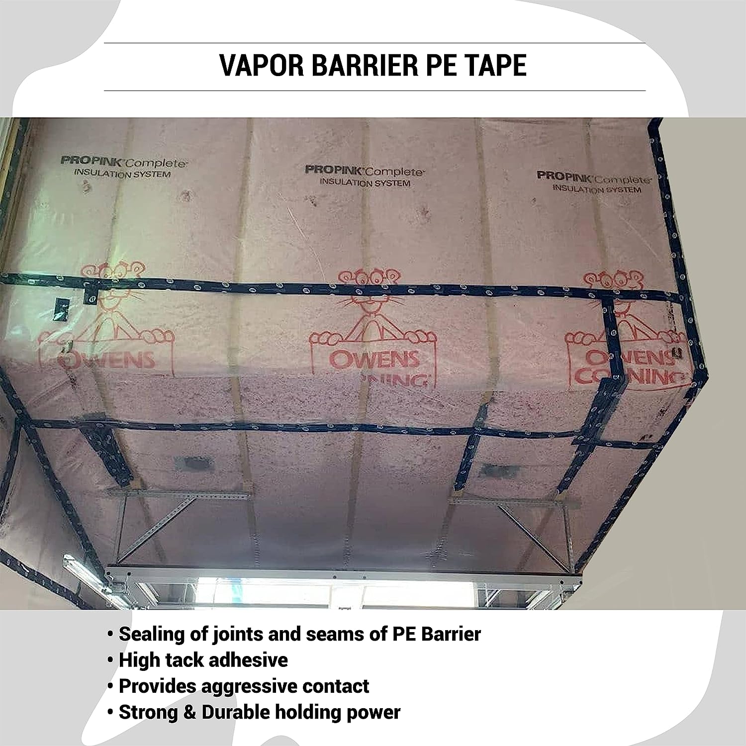 - Permanent bond: Application varies from foam insulation, house wrap sheathing tape, patches temporary garage tents, shelters, tarps, camping equipment, epoxy tables, foam board tape, foam joint tape, and many more.