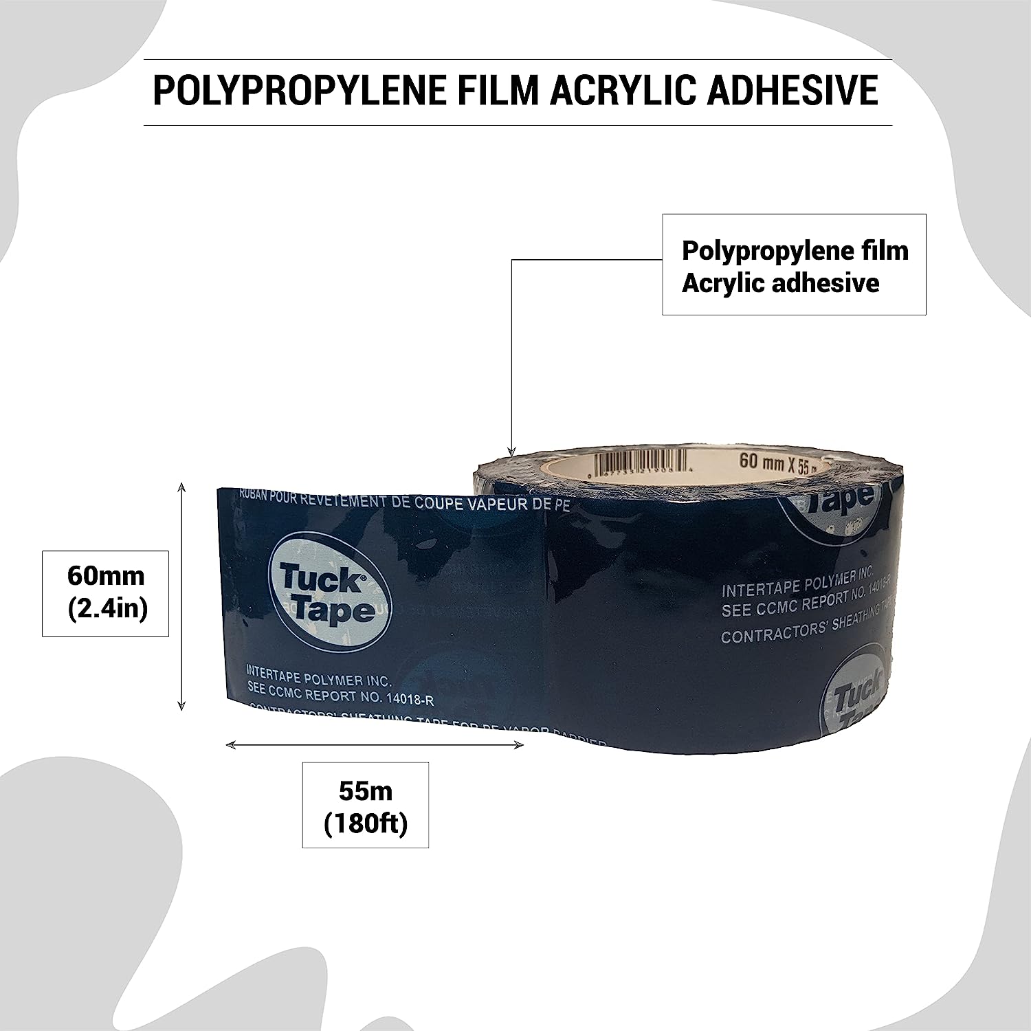 The Tuck Tape brand entered the market in Canada in the early 1950s. Since then, Cantech has been steadily increasing product offerings with a range of quality tape products that include: Heat resistant duct Outdoor plastic masking for stucco applications Laminated foil for seaming metalized bubble insulation High-adhesion PP for seaming vapor barrier Adhesive mats for exiting renovation sites This market sector requires products that must sustain the harsh realities of long-term exposure to the elements, the rough conditions of a construction site, and the demanding needs of professional designers. Our growing sales in this category demonstrate our ability to satisfy both the architects, contractors, and carpenters as they construct homes, commercial buildings, epoxy tables, and office towers across the continent. This blue tape is polyethylene (PE) vapor barrier tape is UV resistant polypropylene film coated with a very aggressive acrylic adhesive. Bonds extremely well to an insulation house wrap, insulation board, and other materials.
