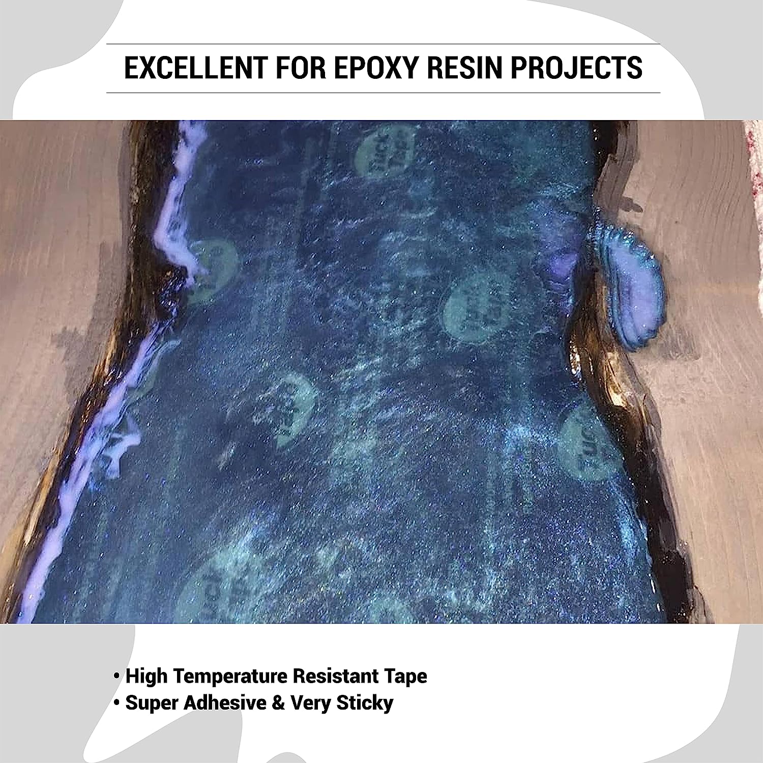 - Epoxy Release Tape: This premium resin epoxy tape doesn’t stick to 2 part epoxy resin projects and excellent for epoxy mold release. It is capable of withstanding the high heat while pouring and creating epoxy woodworking tables. It works great for encapsulating the epoxy resin within your mold and provides ease when de-molding.