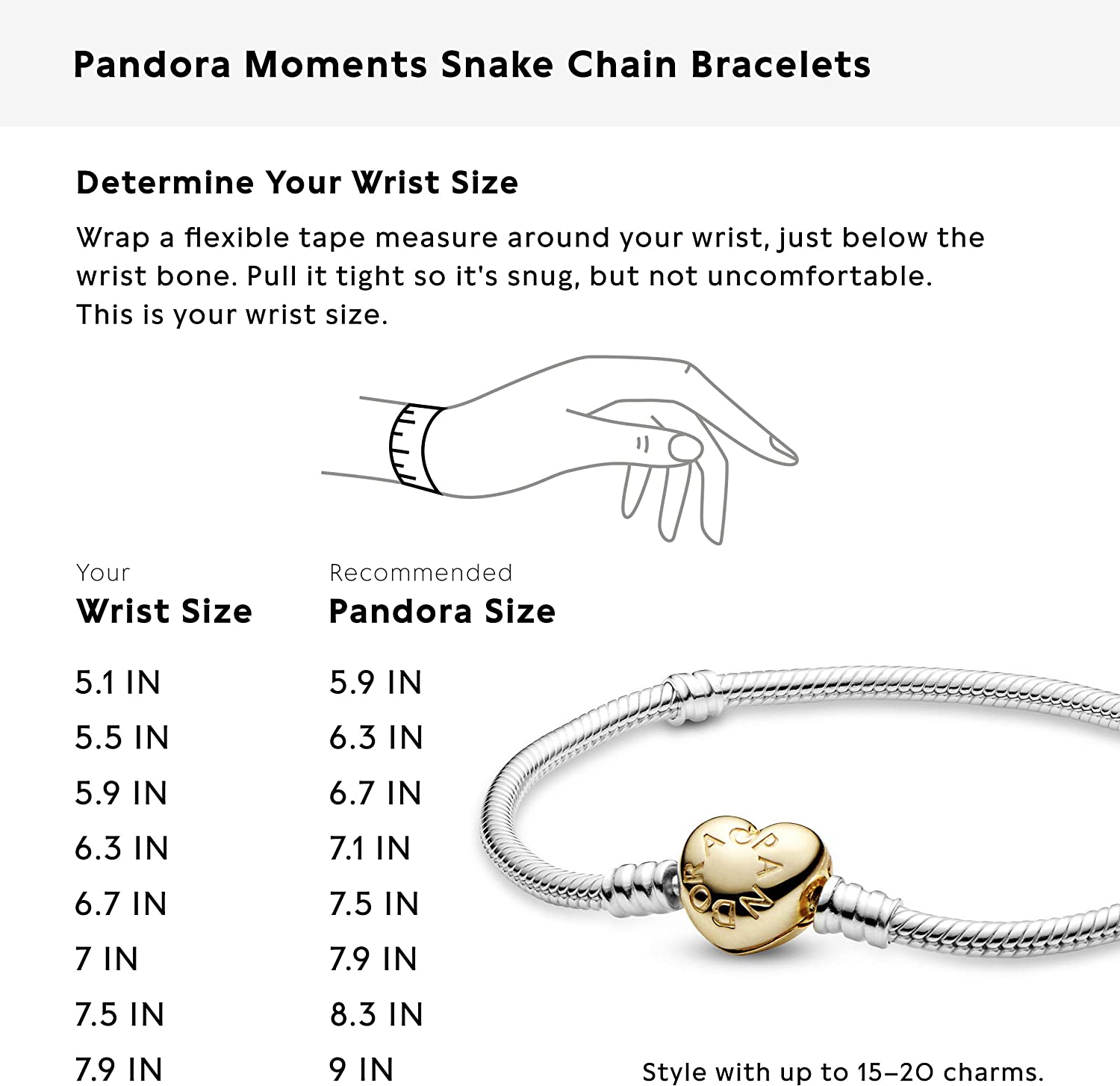 This romantic snake chain bracelet is perfect for your Pandora Moments charms