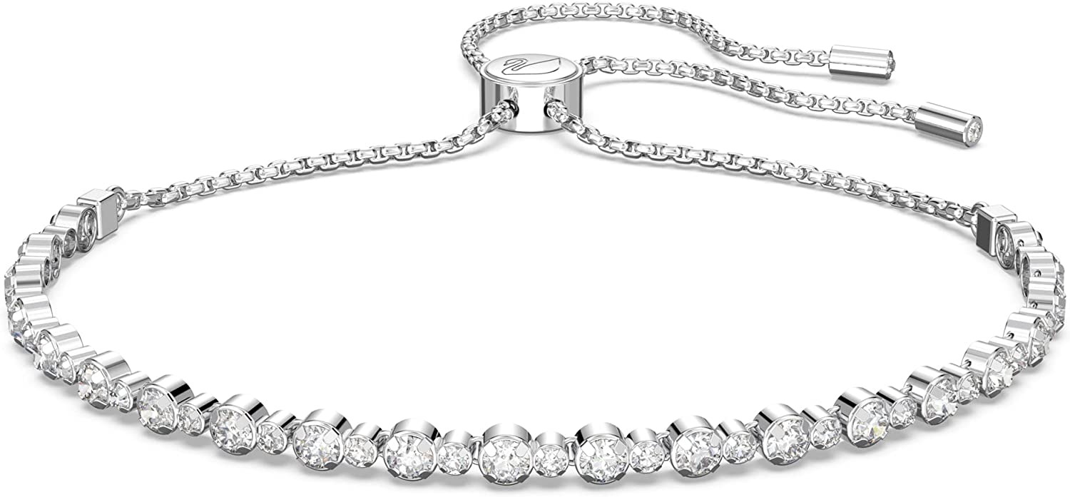 Items delivered: 1 x Swarovski Subtle collection bracelet for women, with adjustable rhodium plated chain, clear Swarovski crystals and bolo closure, complete with Swarovski bracelet box