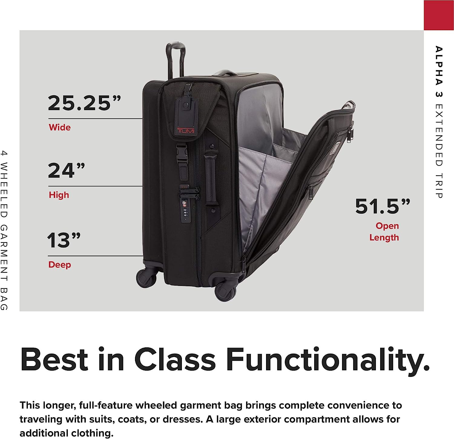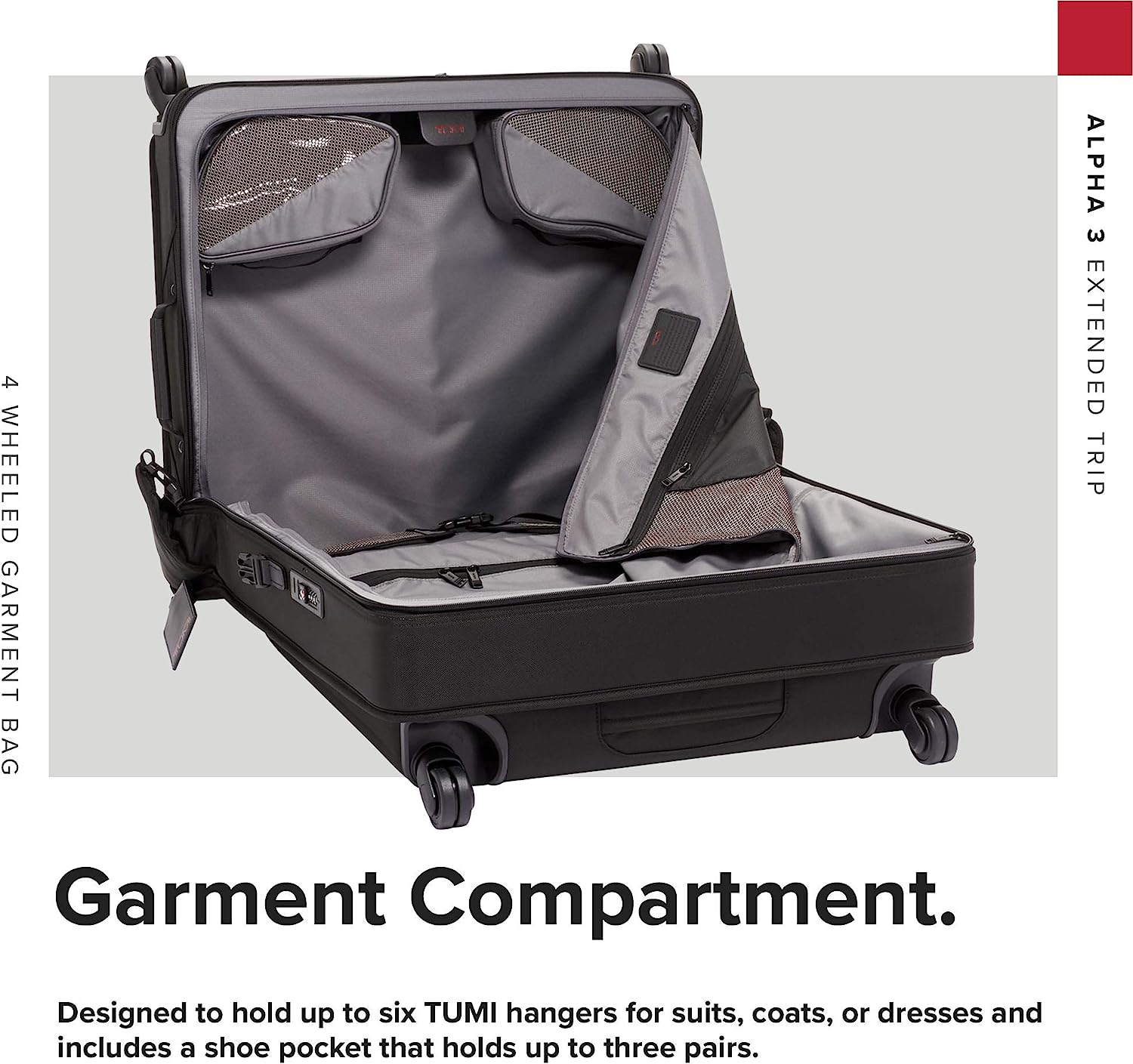TUMI Alpha 3 Extended Trip 4-Wheeled Garment Bag with TSA Lock - Stores Suits, Coats, Dresses, and Shoes - Black