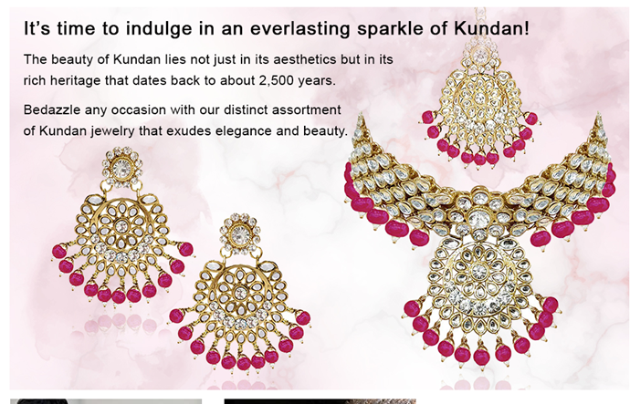 • Our Quality: Every piece here is a product of love of labor. We have tried to mix and match the ethnicity of rich Indian heritage with contemporary style. We work with the primary core principle to achieve customer’s satisfaction by providing quality products and great buying experience as our pleasure lies is in your satisfaction. We take pride in our exquisite jewelry that undergoes multiple processes of quality check to maintain our authenticity, and craftsmanship standards.