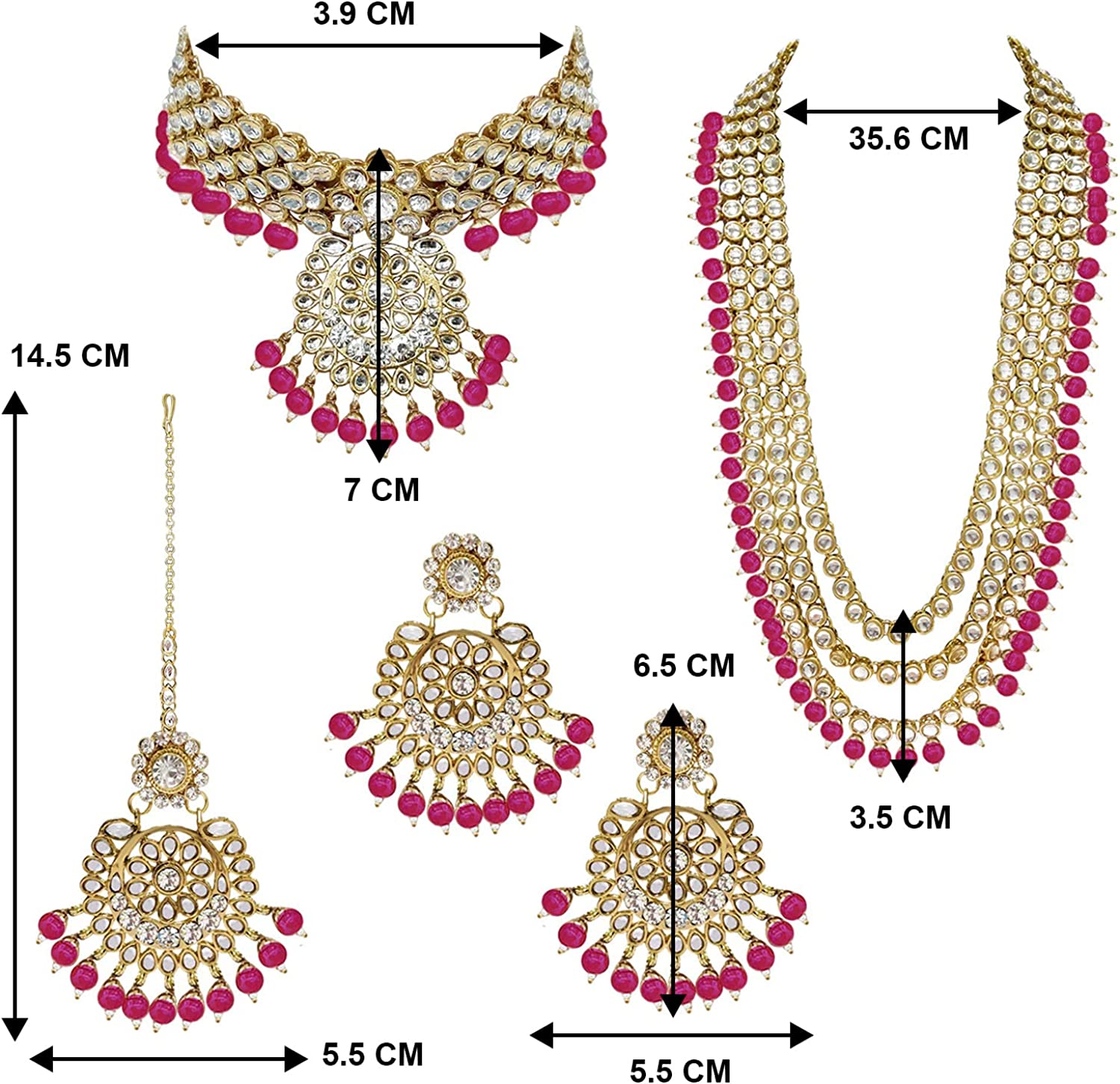 • DIMENSIONS(In Inches): Long Necklace Length - 26", Choker Necklace Length - 10" , Necklace Width - 3", Earring Height - 3", Earring Width - 2.25" , Mang Tika Length - 7" & Mang Tika Width - 2.25"