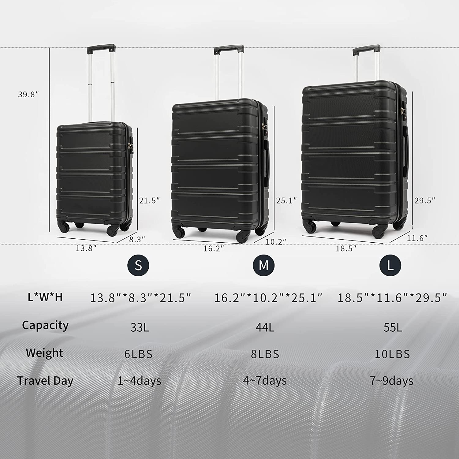 The complete 3 piece suitcase set will be shipped with each suitcase inside one another to save space for your convenience.