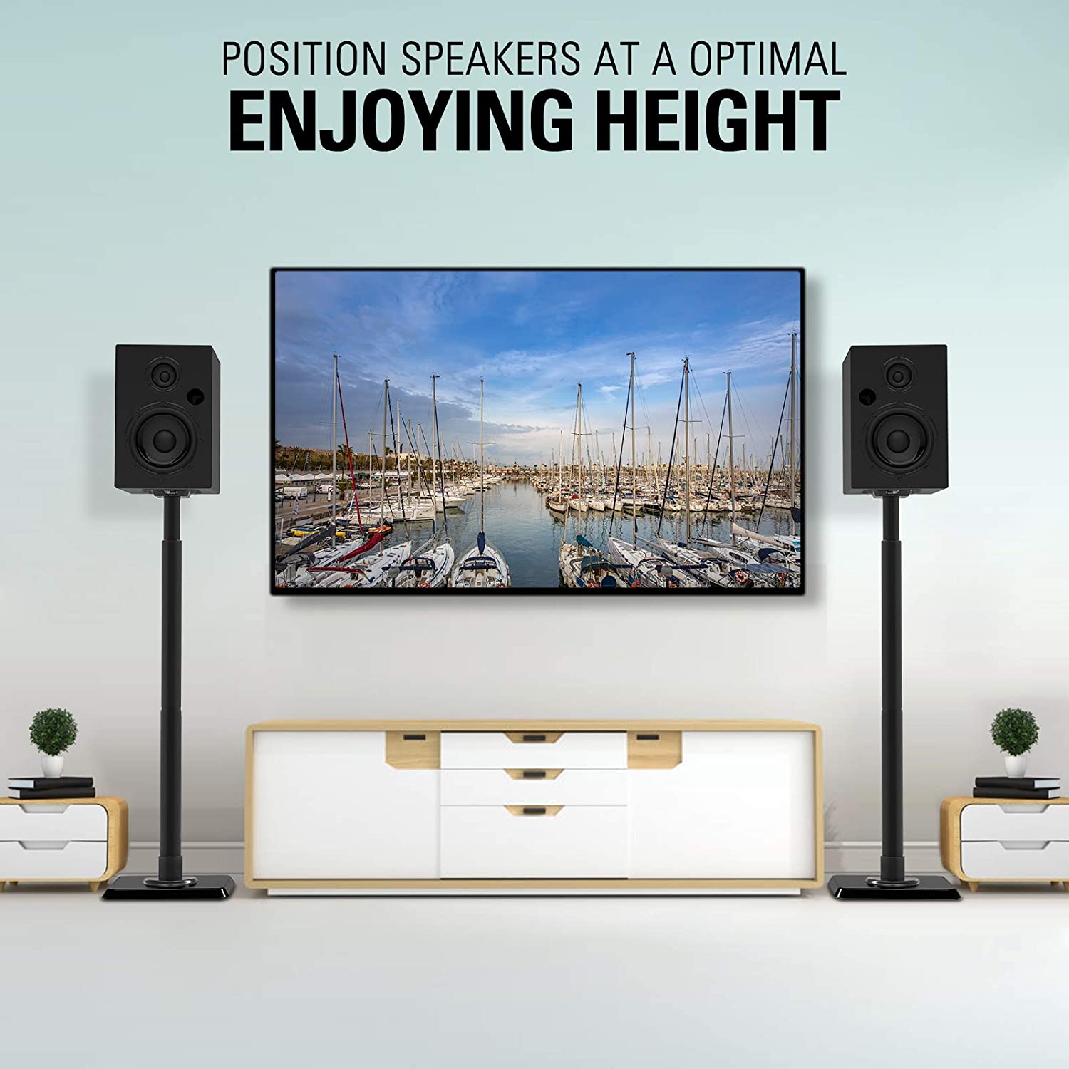 HEIGHT ADJUSTMENT - Rear speaker stands with extendable tubes allow to adjust the height from 33" to 42" for optimal listening experience. This surround sound speaker stands are perfect for your home/theater entertainment system