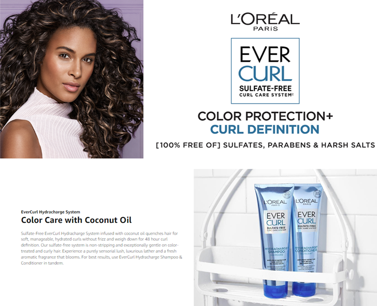 L'Oreal Paris EverCurl sulfate free shampoo and conditioner are anti-frizz, hydrates, and smooths curly hair. Coconut oil helps control frizz and weigh down for 48-hour curl definition. Our formulas are especially gentle on curls and color treated hair. There are no harsh sulfates, salts or surfactants that can strip, dull and damage hair like other curly hair products. Experience a purely sensorial lush, luxurious lather and a fresh aromatic fragrance that blooms. system of shampoo, conditioner, and treatment. Packaging may vary, what you receive may not be what is reflected on site.