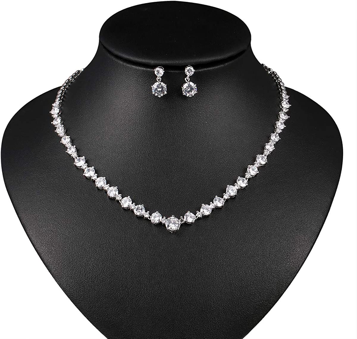 Necklace length:17.12 inch(43.5cm),earrings size:0.41 inch*0.05 inch as showed in the second picture,we aslo add a 0.78inch extender,be sure to measure your neck size before buying,maybe it will be small or large for you!!!