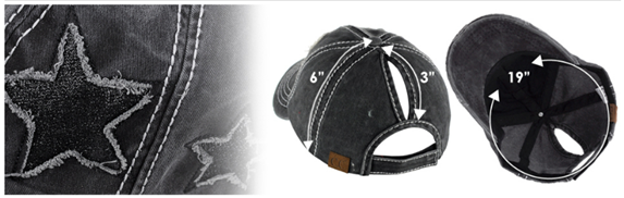 Ponytail slot: 3.0" x .5"; perfect for pulling your messy bun or high ponytail through