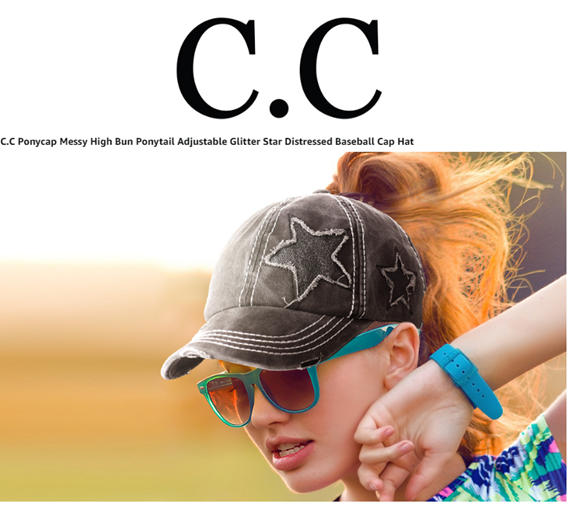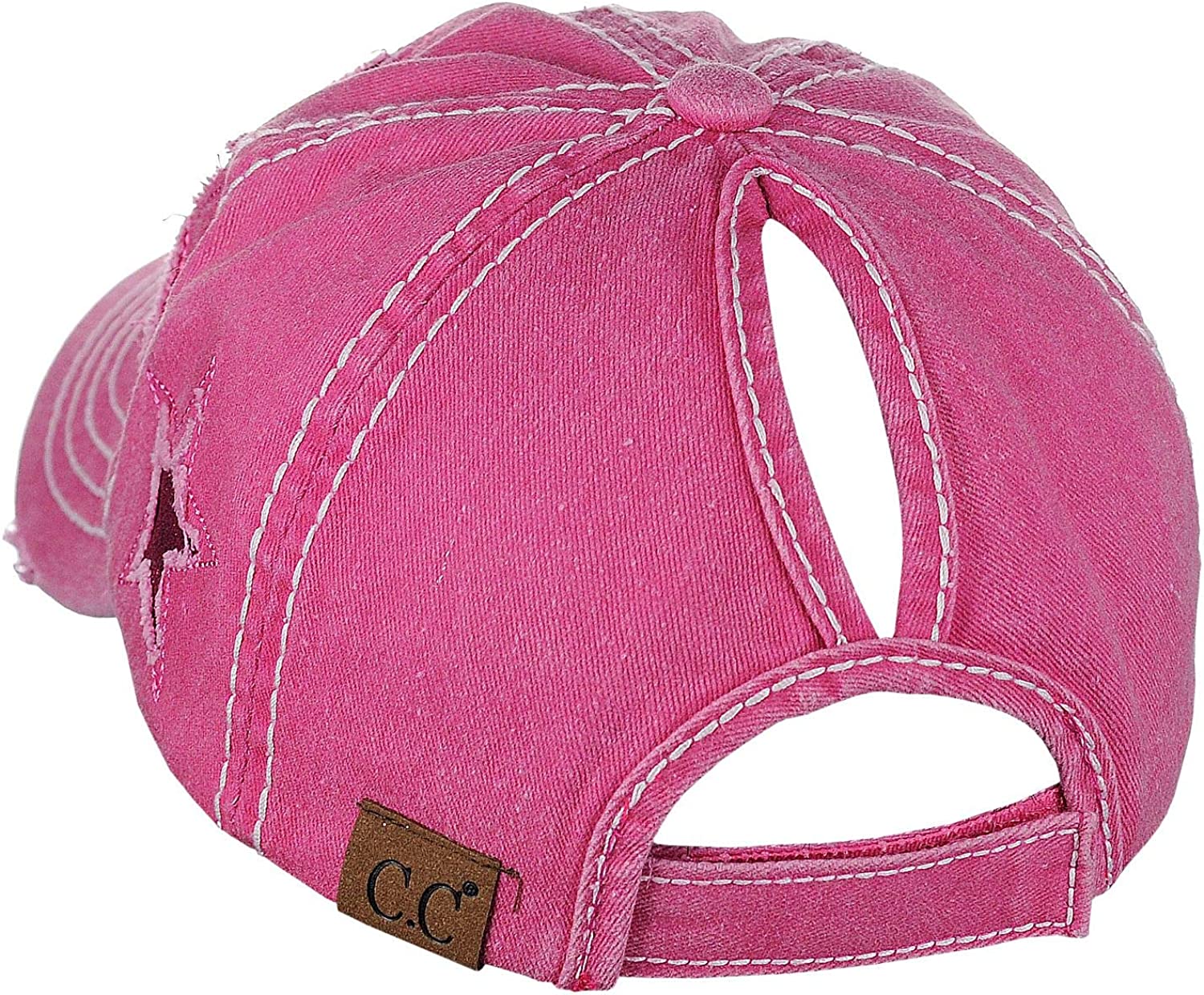 C.C Ponycap Messy High Bun Ponytail Adjustable Glitter Star Distressed Baseball Cap Hat