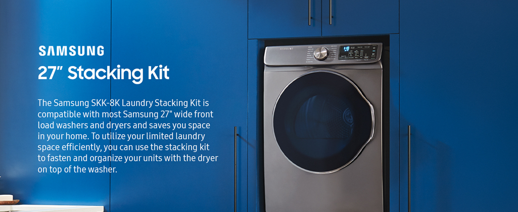 • LAUNDRY STACKING KIT: Compatible with most Samsung 27" wide front load washers and dryers and saves space in your home; To utilize your limited space efficiently, use the stacking kit to fasten and organize your units with the dryer on top of the washer