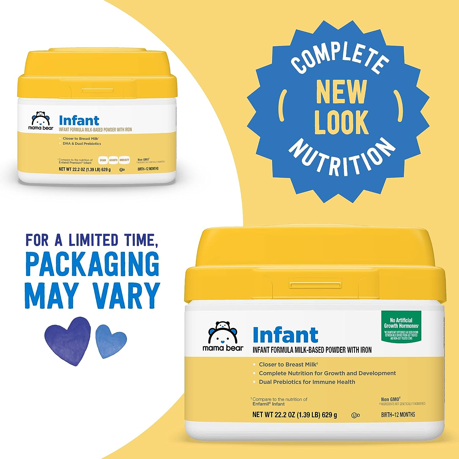 Amazon Brand - Mama Bear Infant Milk-Based Baby Formula Powder with Iron, Dual Prebiotics, Omega 3 DHA and Choline, Brain, Growth, Immunity, 22.2 Ounce (Pack of 1)