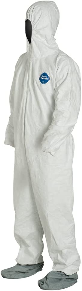 For situations that call for disposable PPE (personal protective equipment) this disposable protective suit from DuPont is our most popular garment for professionals and home improvement users. It is a versatile garment for a range of jobs including paint spraying, mold treatment, lead and asbestos abatement/remediation, general maintenance/operations, and general cleanup work. These protective suits are able to breathe so they don't get too hot, but they stop hazardous particles down to 1 micron in size. The Dupont Tyvek coverall is an Industry leading suit featuring the best tear and puncture resistance.