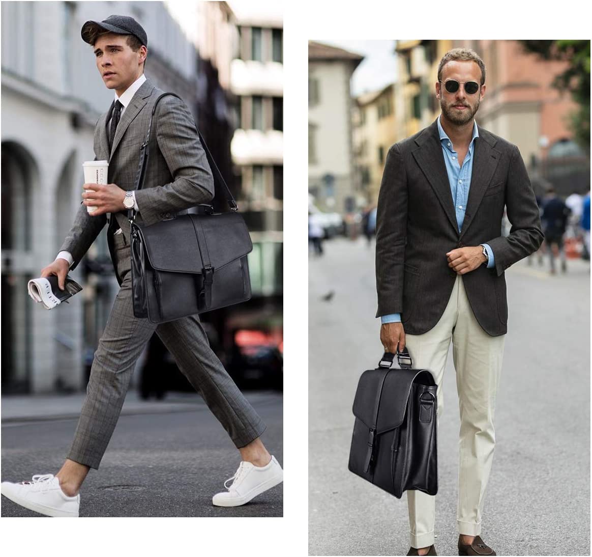 - High Quality Material: Vegan leather (pu leather), water-resistant. Briefcase size:17"(L)*4.5"(W)*12.5"(H). Strap length: max 62inch , min 20inch. Strap width: 1.2inch. Weight: 1.4kg, 3.09lb.