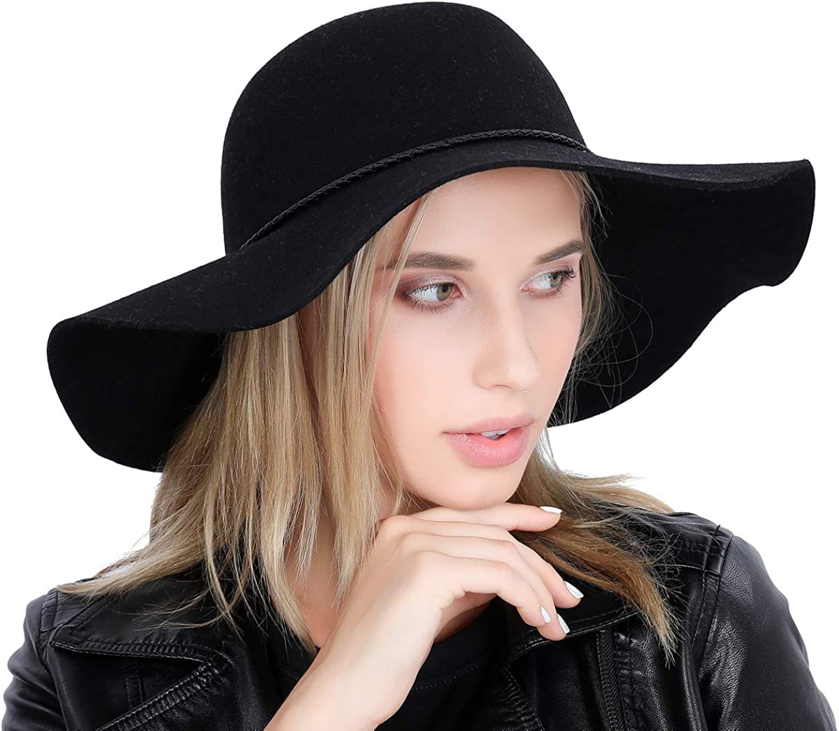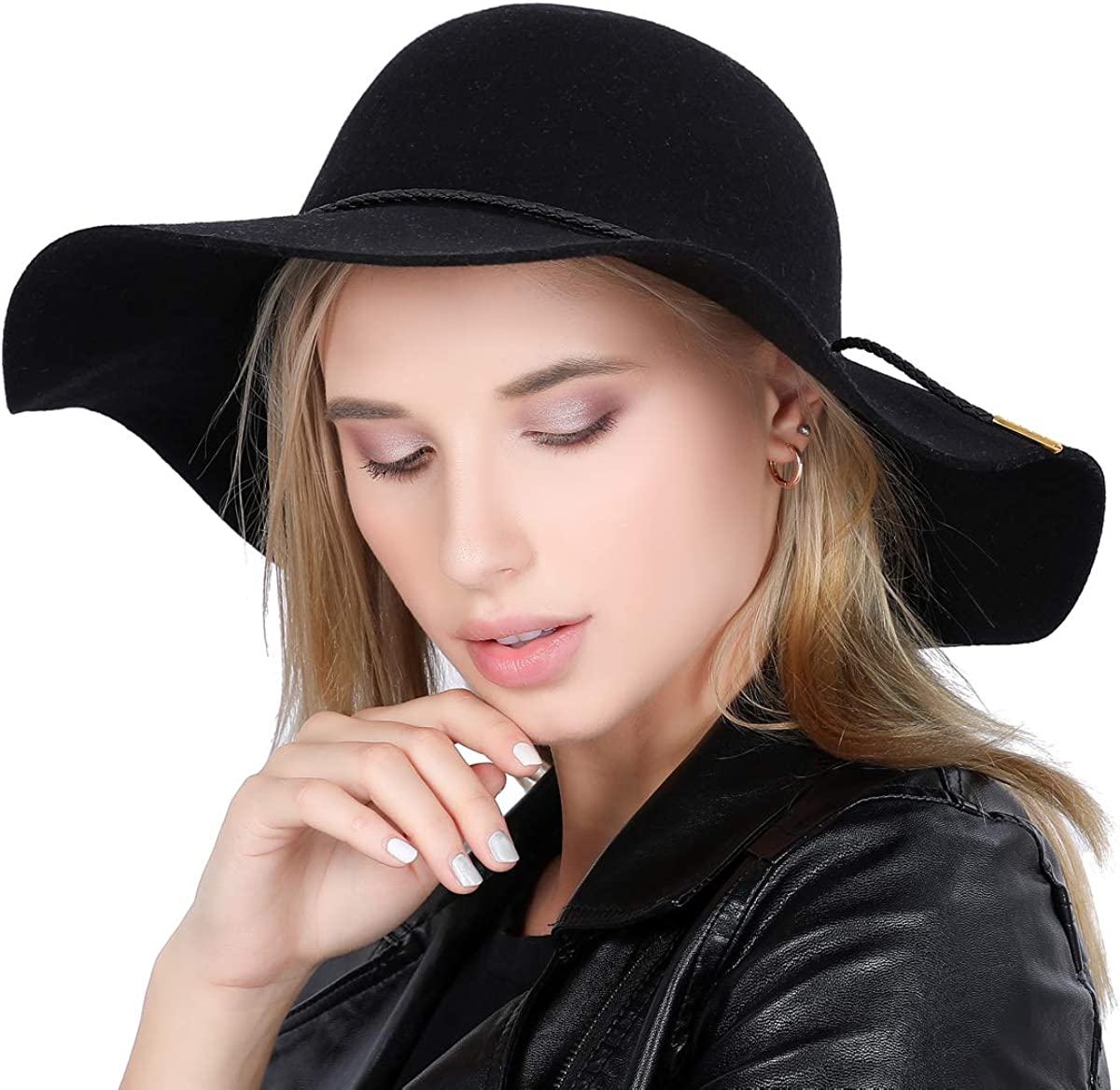 Lanzom Women Lady Retro Wide Brim Large Floppy Panama Hat Belt Wool Fedora Hat