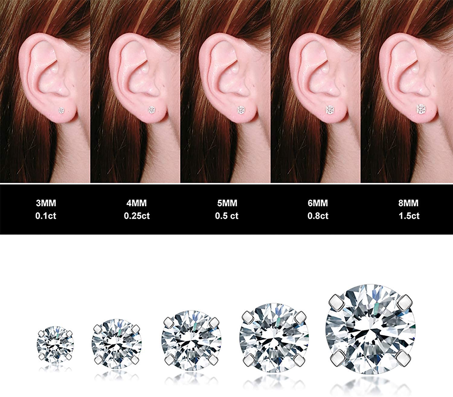 - Dimensions: cubic zirconia width 3,4,5,6,8mm,Gauge Size: 20G =0.8mm pin size: 11mm long, suitable for people over 6 years old, helix earrings and is easy to wear Effective against loss.