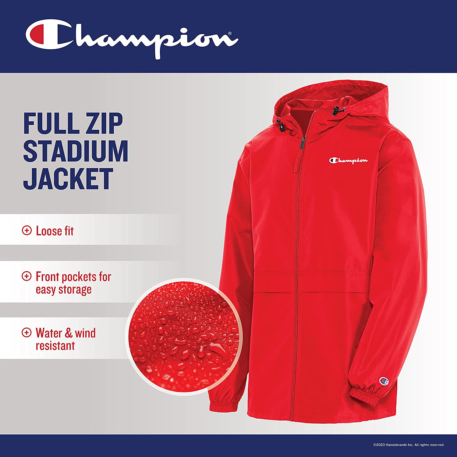 QUALITY FABRIC - Champion's lightweight, water-resistant jacket is made of 100% recycled polyester.