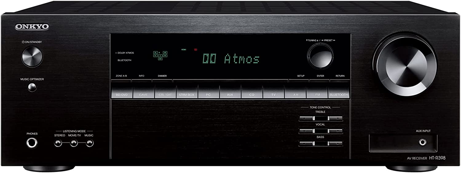 Onkyo HT-S3910 Home Audio Theater Receiver and Speaker Package. Experience the ultimate in pure sound flexibility. The powerful yet compact HT-S3910 transforms tinny TV sound into a thrilling sonic sensation with Dolby Atmos and DTS playback through 3.1.2 channels. Legacy soundtracks are remapped to localize sound and add height dimensionality, or enjoy 3D immersion without height or rear speakers connected thanks to Dolby Atmos Height Virtualizer and DTS Virtual technologies. Everything you need is in the box, right down to cables to connect factory-matched speakers. These full-range units love high-current power, so turn it up and enjoy home entertainment as it’s meant to be. FEATURES: Package Includes: (1) Front/Center Speaker, (4) Surround Speakers, (1) Subwoofer and (1) Receiver. Cables included. 4K HDR Support for HDR (High Dynamic Range) video. 4K/60p and HDR (HDR10, hlg, Dolby vision, BT.2020). Power an HDMI network dongle via USB terminal or enjoy streaming audio with Bluetooth technology. Advanced Music Optimizer works magic on lossy audio.
