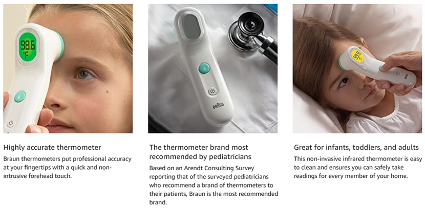 - A BRAND YOU CAN RELY ON – Pediatricians rely on Braun digital, forehead and no contact thermometers, and you can, too. Your family’s health is of the utmost importance, and we make thermometers you can trust