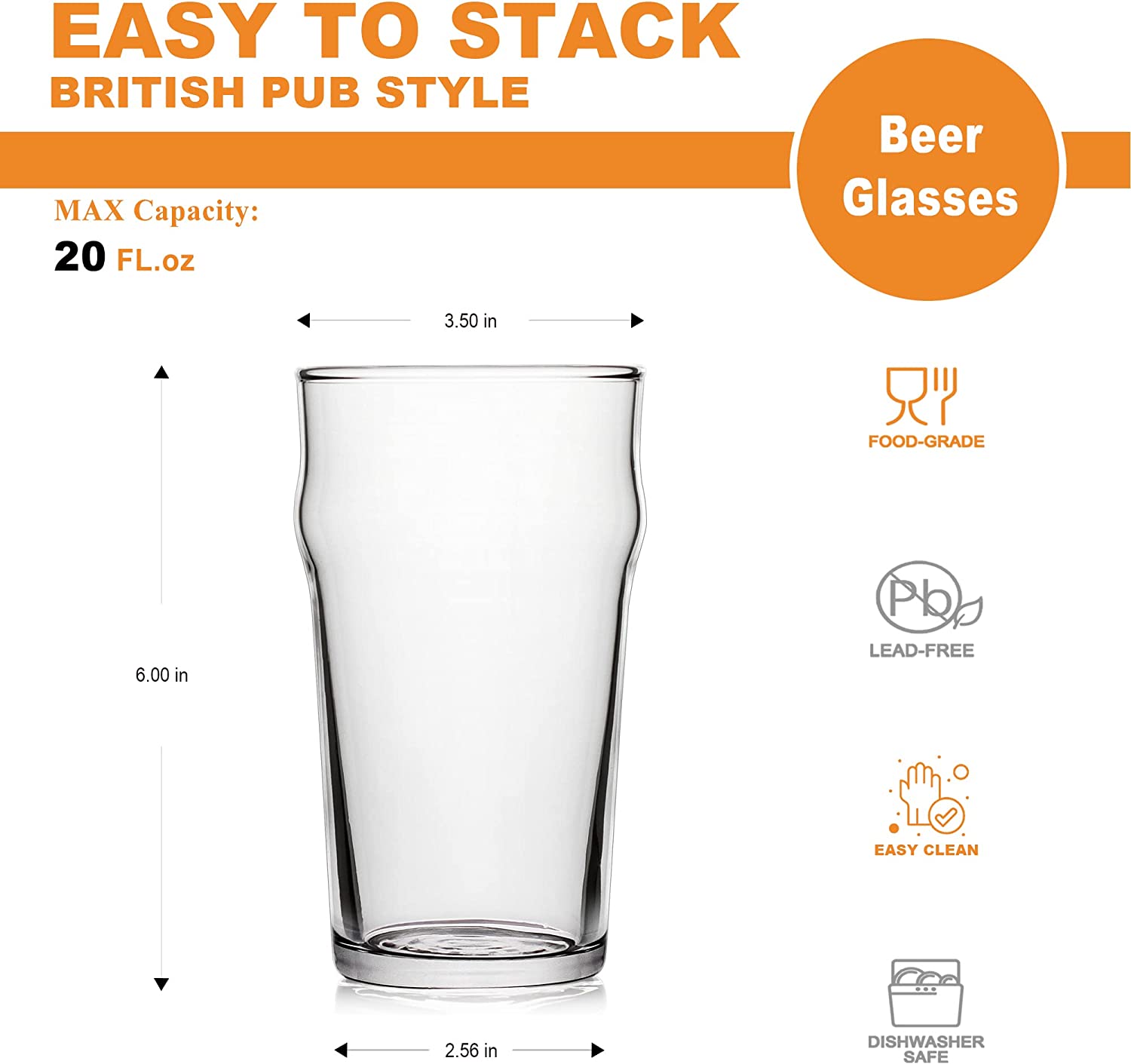 Pint Glasses,20oz British Beer Glass,Classics Craft Beer Glasses,Premium Beer Glasses Tumbler Set of 4, Pub Beer Glasses,Unique Design Beer Glasses Easy Stacking in The Cupboard