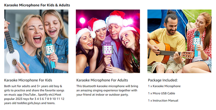 • ♪【Perfect Birthday Gifts For Kids Or Friends】- The bluetooth karaoke microphone bright color design and beautiful package box make it's a great birthday gifts for 3 4 5 6 7 8 9 10 year old girls boys teens.Better choice gifts for all kinds of the festival (Easter, Christmas, Valentine,Halloween, Thanksgiving, New Year).