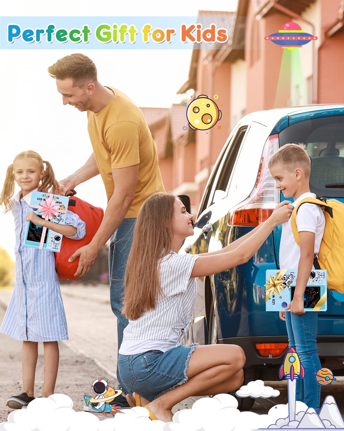 ?? [PORTABLE AND LIGHTWEIGHT]: The Preschool toddlers can have all the pleasure, enjoy painting, count the numbers, spell phrases at any time and place (home, car, outside, airplane, school) with no longer making a mess on the ground or walls, especially the time they are at home. 10 inches of writing area, 0.26-inch ultra-thin design, 6 ounces weight, hardly feel the weight of the toys for 5 year old boys, which is convenient to carry with bag.