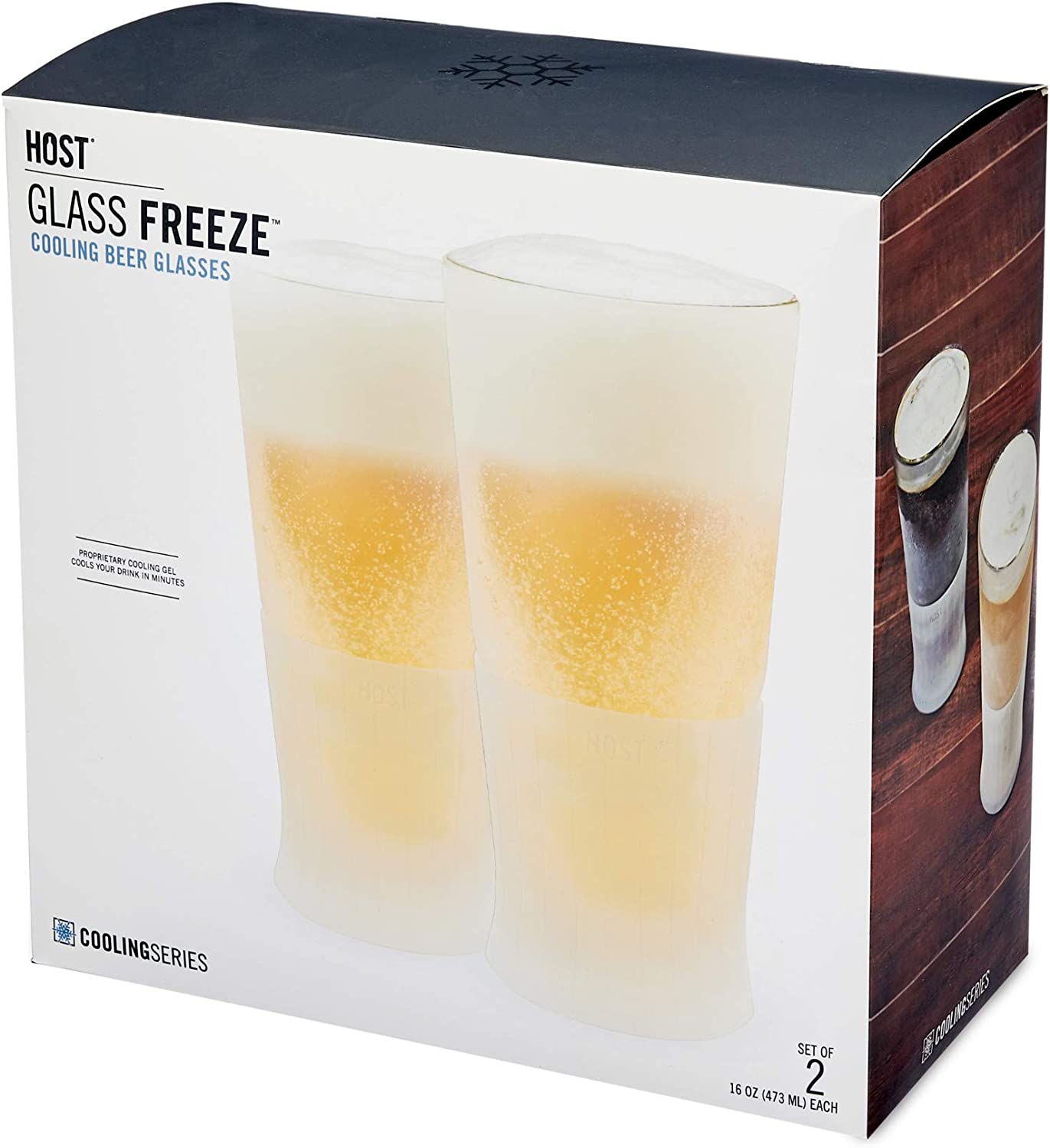 Host Freeze Beer Freezer Gel Chiller Double Wall Frozen Pint Set of 2, 16 oz, White Glass 2-Pack
