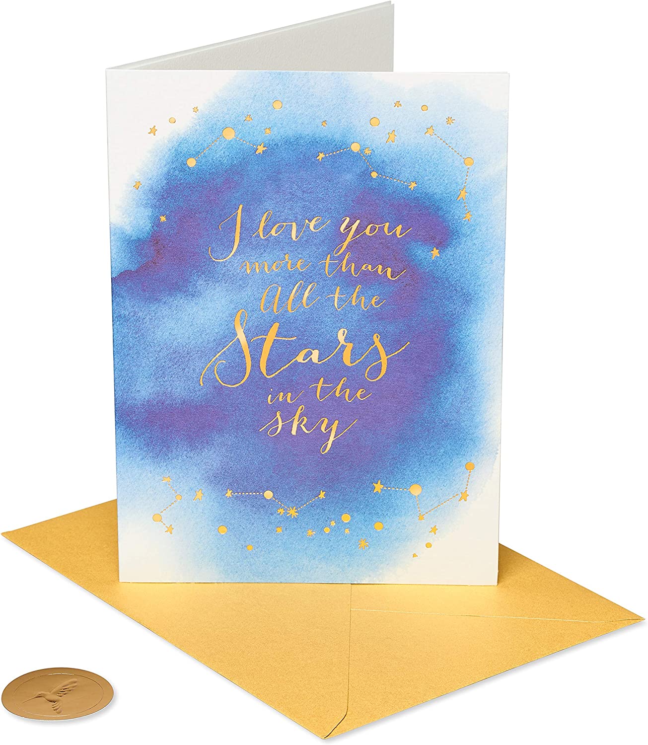 Share special anniversary congratulations with a handcrafted card by Papyrus! This celestial-themed anniversary card features a warm message in beautiful script, enhanced by shimmering foil and shiny gems. With unique artistry and exquisite materials, Papyrus anniversary greeting cards offer premium looks for special couples!