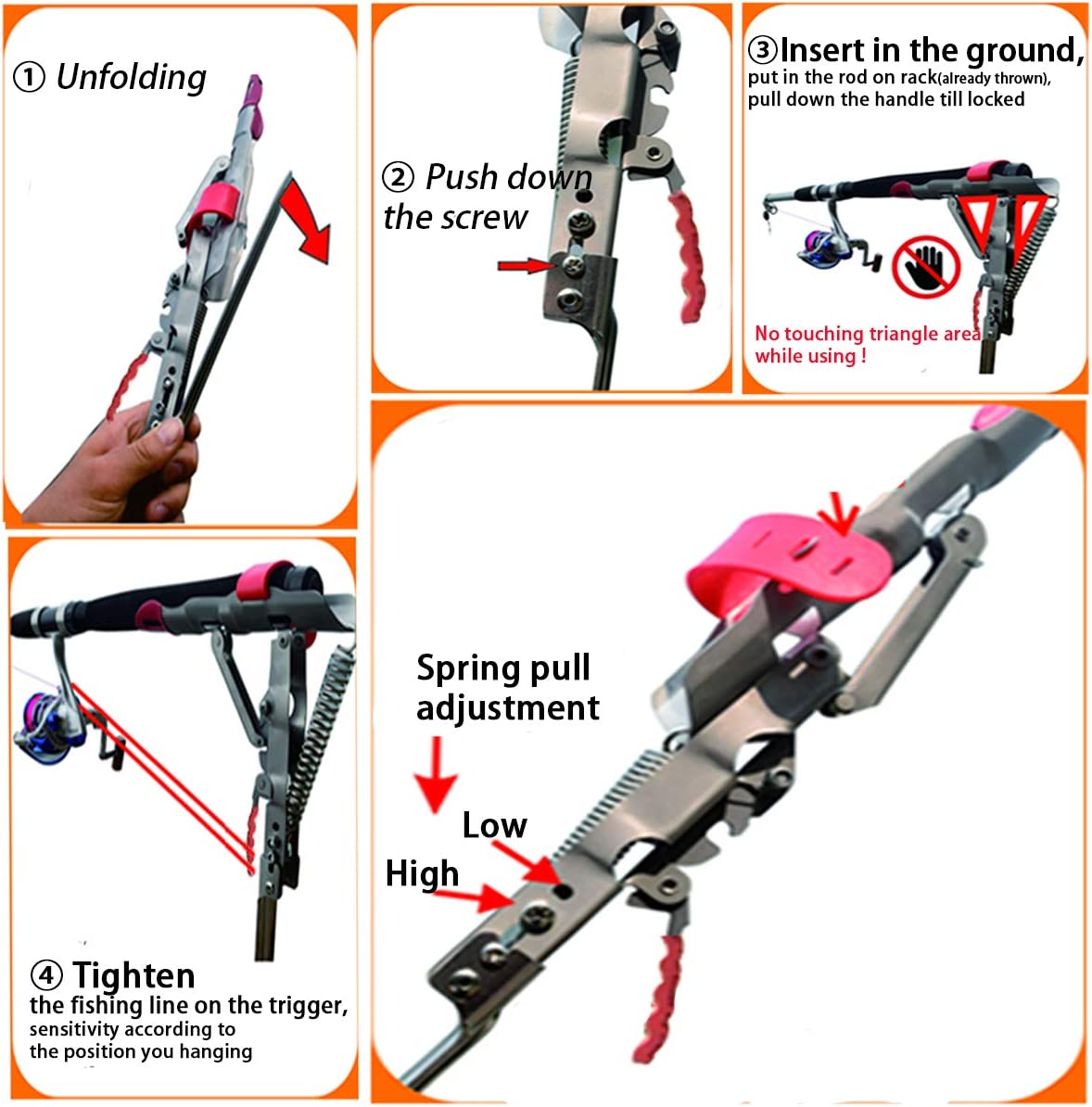 EASY TO USE - Spring fishing rod holder with thicken ground insert,easy to set up,and free your hand,enjoy a leisurely fishing trip