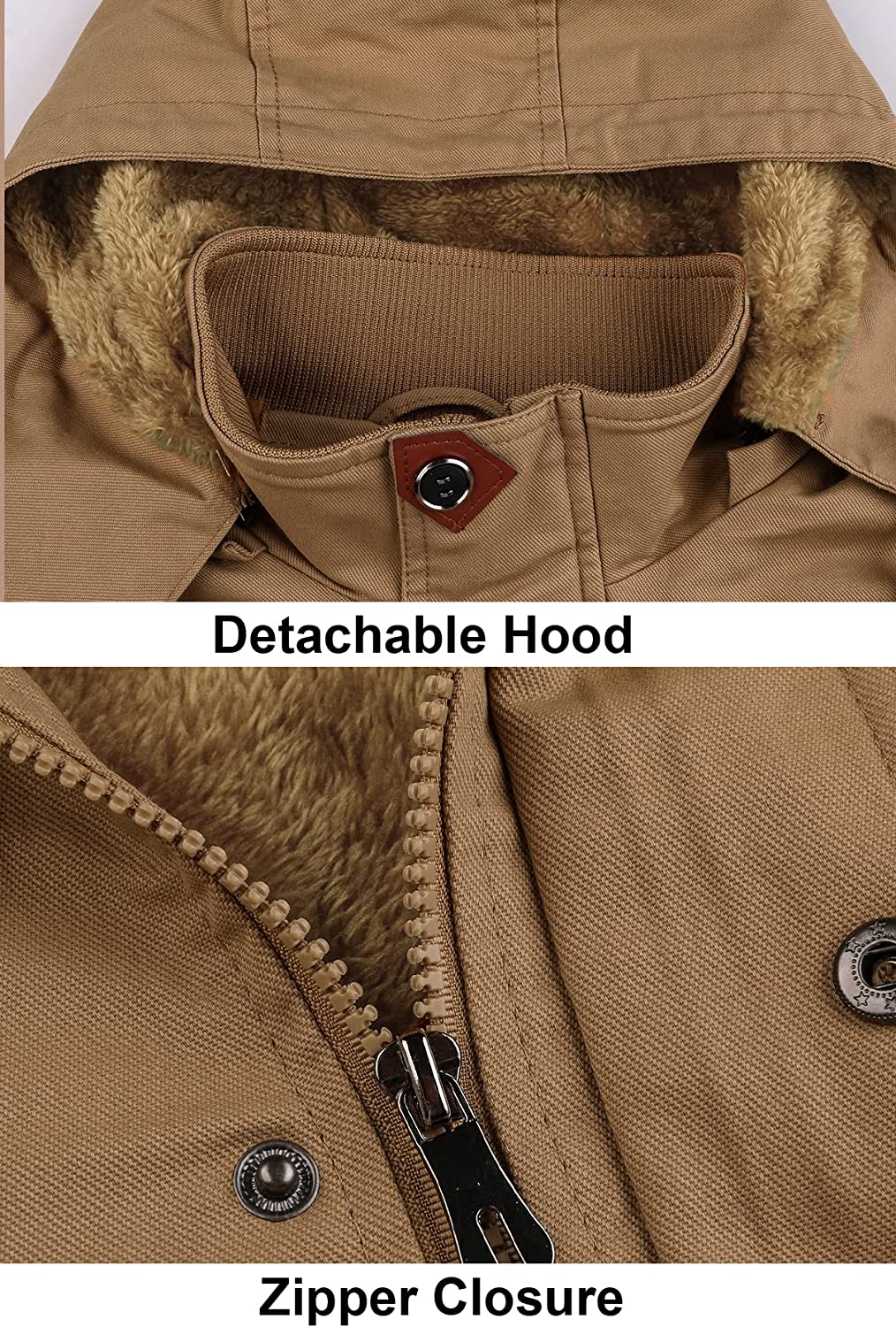 MAGCOMSEN Men's Cargo Jacket Winter Warm Coats Fleece Lined Military Jackets Cotton with Removable Hood