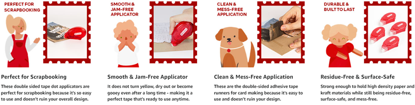SAFE FOR PHOTOS SCRAPBOOK TAPE. Store your best photos in a scrapbook and relive them even after decades. This double sided adhesive tape runner won't destroy your memories because it's acid-free, photo-safe, archival-safe, and invisible on scrapbook papers and gift wraps.