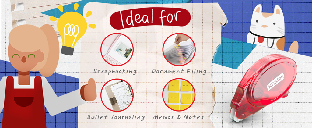 COMPACT AND EASY TO USE. Bring this double-sided tape roller applicator anytime and anywhere. It has a protective tip cover that's avoiding your bag from sticking to the adhesive. It's ideal for school use, gift-wrapping, scrapbooking, and other home projects.