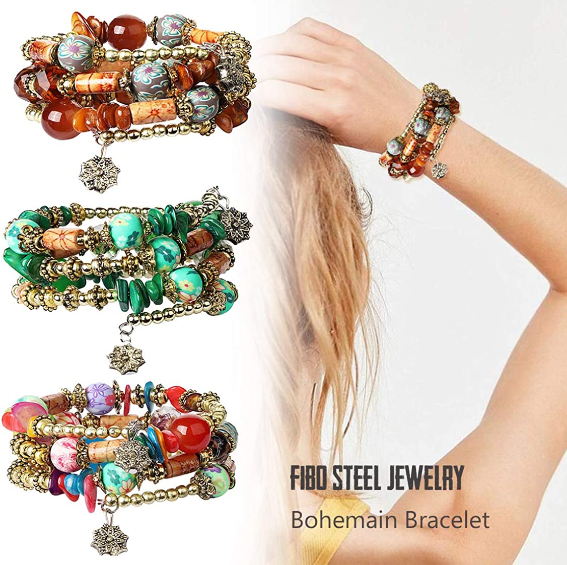 Affordable Vintage Bohemian Bracelet Set--6 sets handmade beaded bracelets come in a order, more choices for you. Bohemian beaded wrap clasp bangle have multi color can meet you everyday need