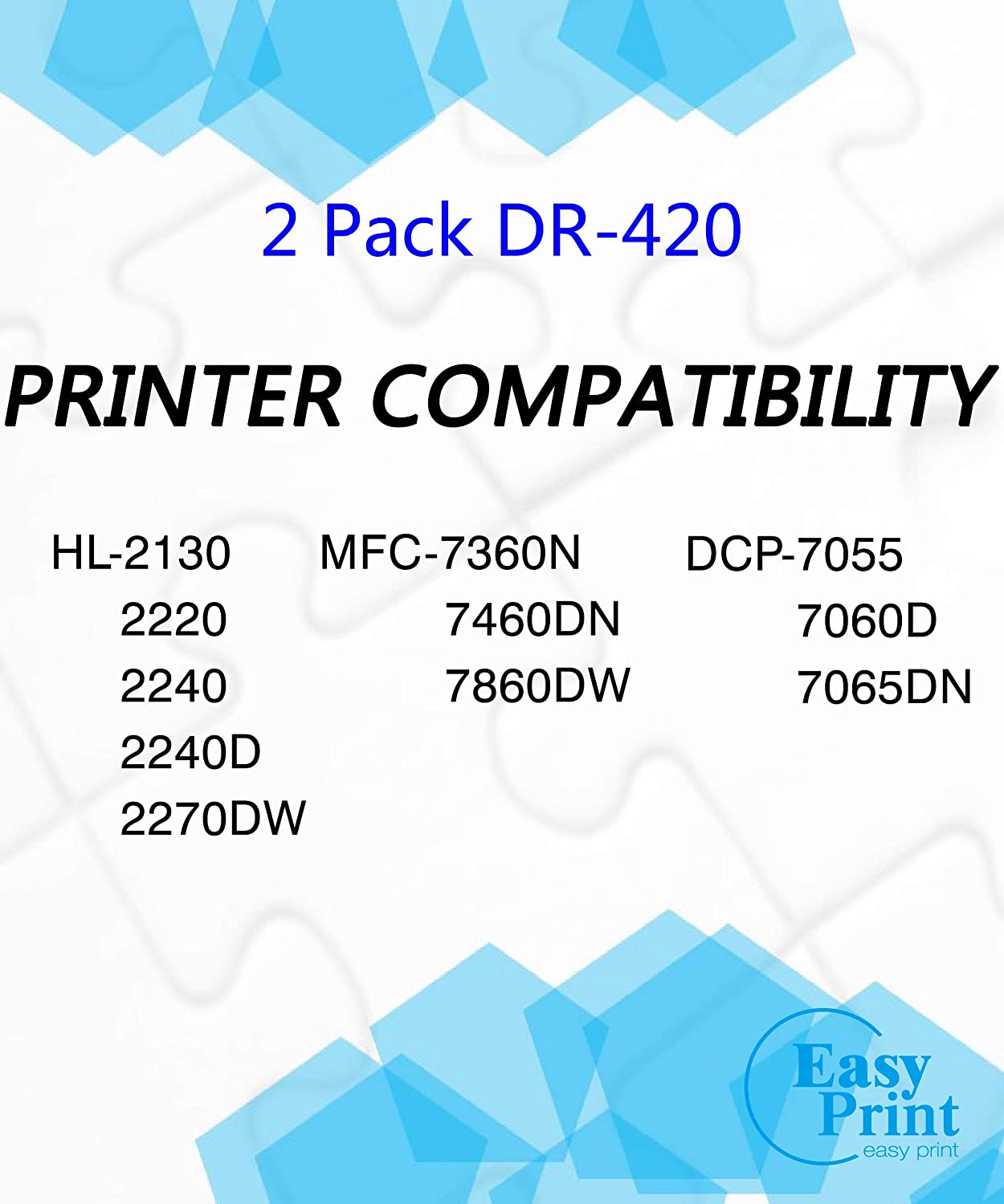 EASYPRINT Compatible DR-420 Drum Unit DR420 Used for Brother HL-2130 HL-2220 HL-2240D 2270DW 7060D 7065DN 7460DN MFC-7360N 7860DW DCP-7055 7060D 7065DN Printer, (Total 2-Pack)