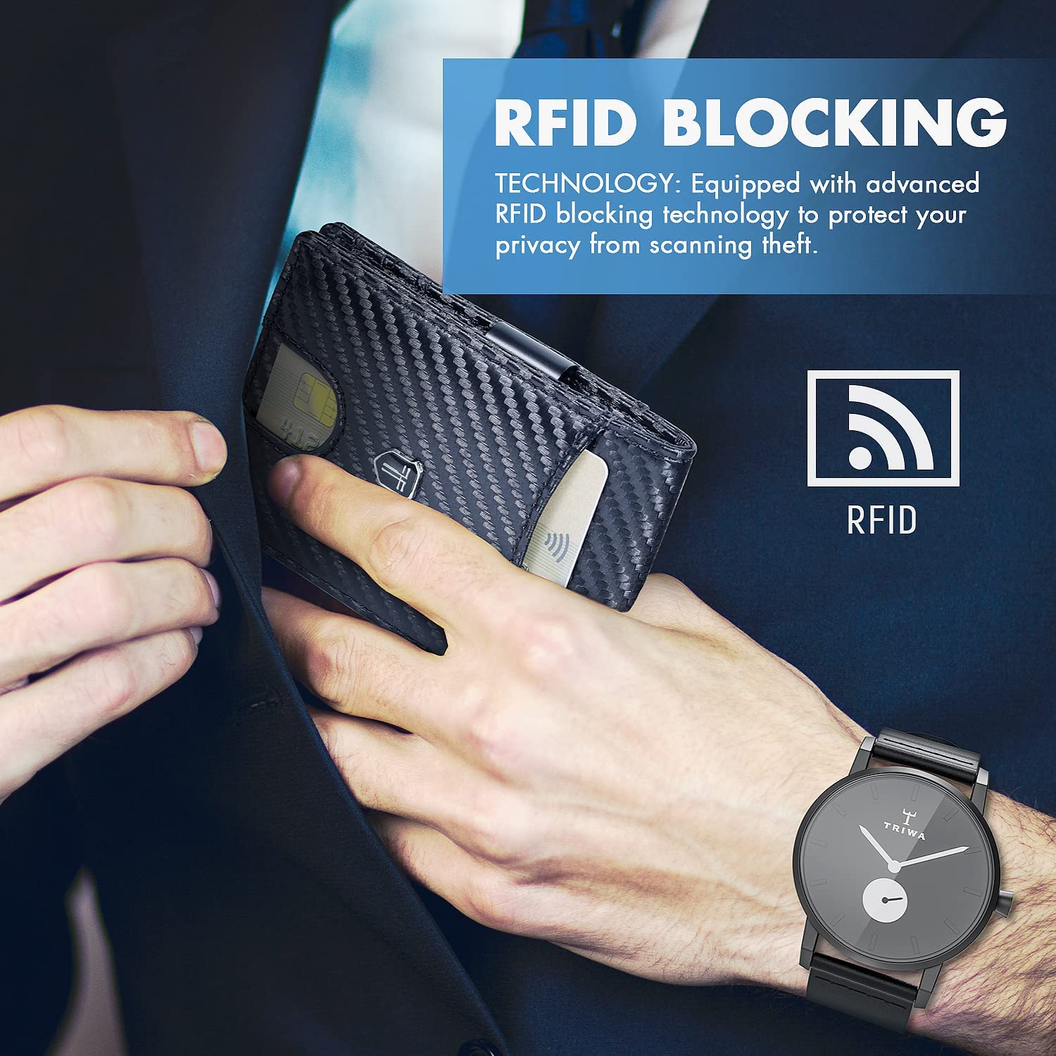 RFID BLOCKING TESTED & APPROVED BY INDEPENDENT LAB TESTS - Tests show that our RFID wallet for men can block the 13.56 MHz Frequency. Complete RFID blocking and protect your information