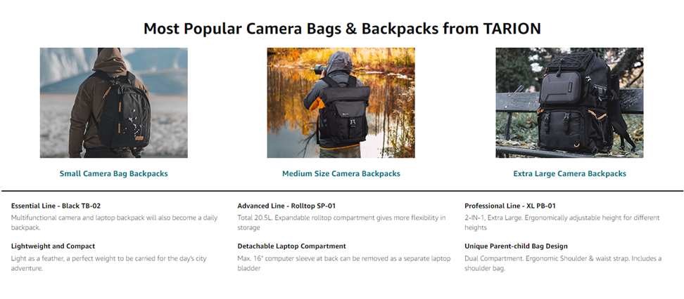 - 【Multi-Functional】 This camera backpack can be easily converted into a lightweight flexible simple straight city day-pack by removing the camera compartment dividers. Super easy to use for small day trips, there's enough room for personal gear. Obviously black is far more practical for everyday use. If you are not satisfied with our camera backpack or have any question, please feel free to contact us. TARION is always here.