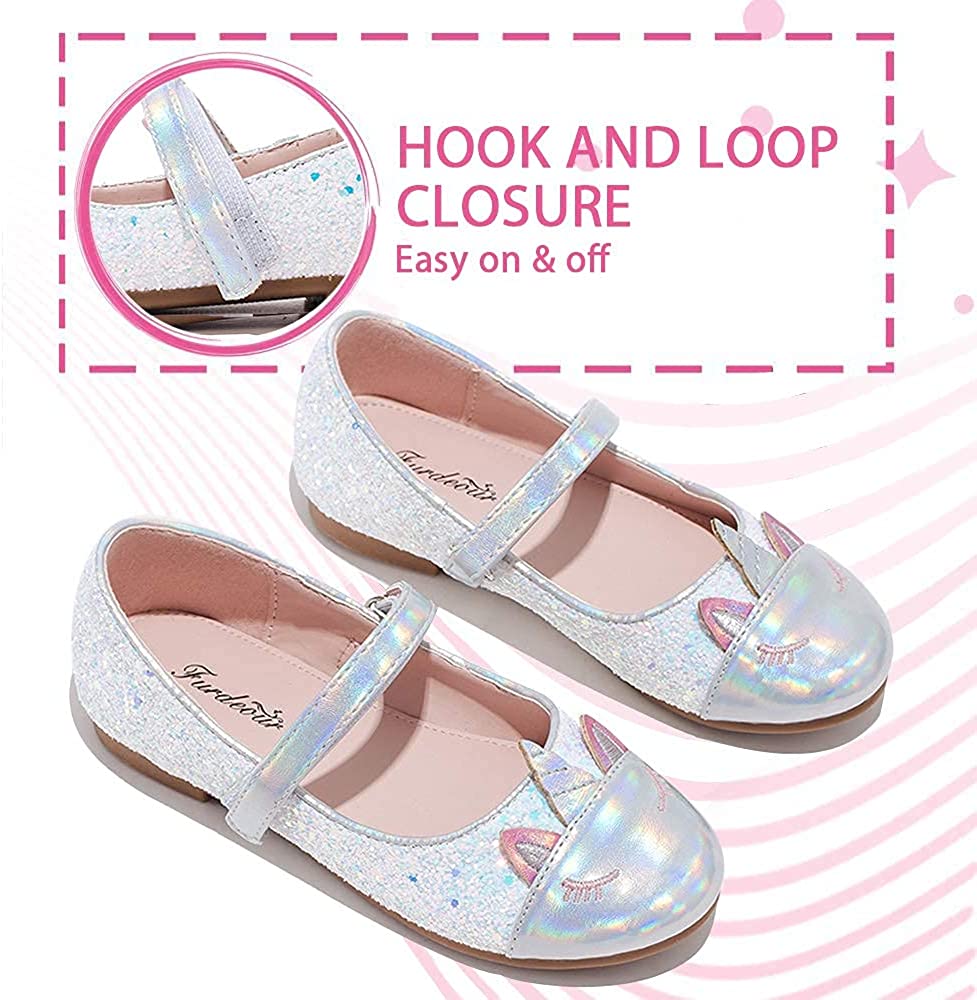 Furdeour Girls Dress Shoes Mary Jane Flower Wedding Party Bridesmaids Shoes Glitter Princess Ballet Flats for Kid Toddler