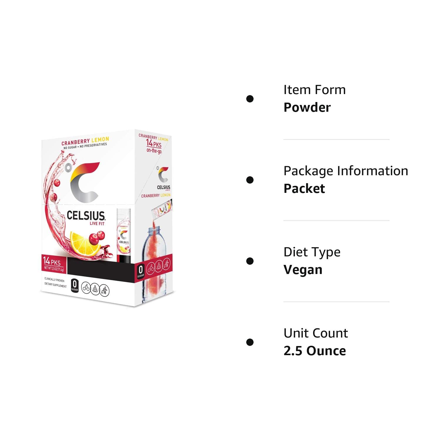 CELSIUS Dragonfruit Lime On-the-Go Powder Stick Packs, Zero Sugar (14 Sticks per Pack)