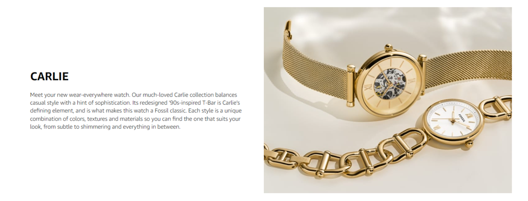 - Our wear-everywhere Carlie collection balances casual style with a hint of sophistication. Straight from our ‘90s-era archives, our redesigned T-bar is the defining element that makes this watch both classic and versatile.