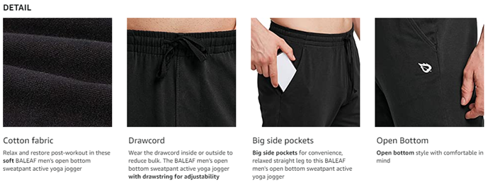 - Wear the drawcord inside or outside to reduce bulk. The BALEAF men's open bottom sweatpant active yoga jogger with drawstring for adjustability