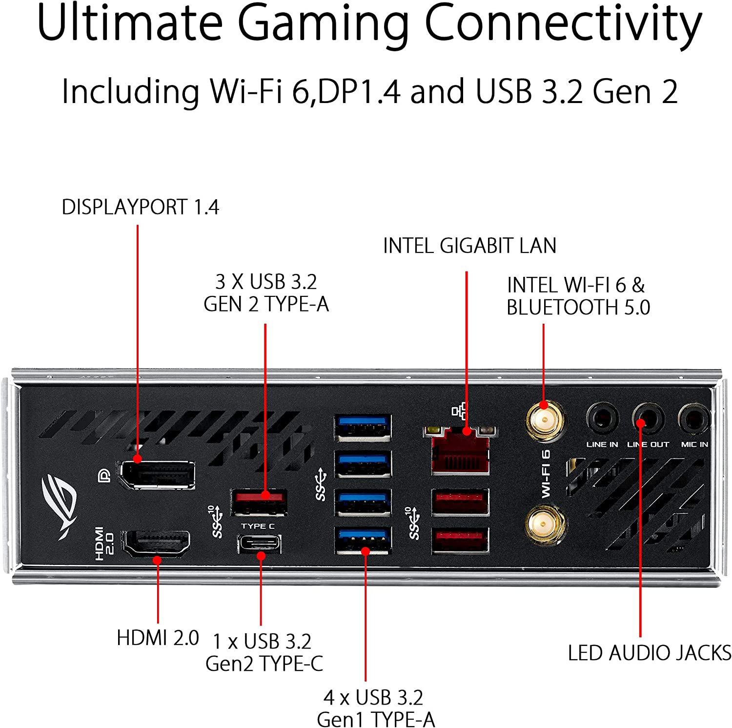 • Fastest gaming networking: Intel Gigabit Ethernet With Asus LANGuard, Wi-Fi 6 (802. 11Ax) with MU-MIMO support, and Gateway teaming via GameFirst V.