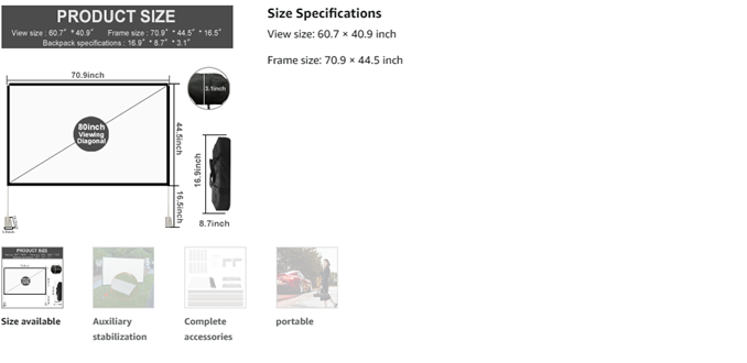 - 【PROJECTOR SCREEN WITH STAND】80 inch Portable projector screen, 16:9 format,160° Wide Viewing Angle. The projection screen has made of high-quality polyester & spandex material .That offers sharp and high-resolution images,even support Front & Rear projection.