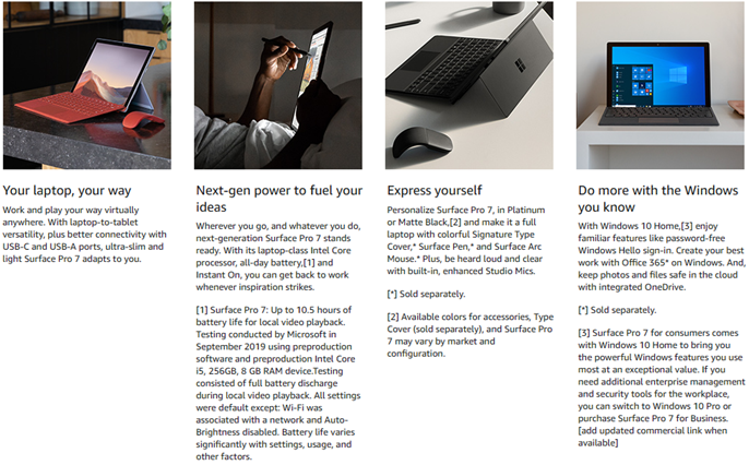 At the office, at home or en route, new Surface Pro 7 adapts to the way you work with laptop-to-tablet versatility. And now, it delivers more power than ever, with a laptop-class Intel Core processor, all-day battery, Instant On, improved graphics, and standby time — plus more multitasking connections, including both USB-C and USB-A ports.