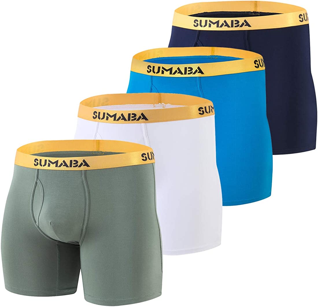 BAMBOO COOL Man Underwear No-Ride-Up Men's Boxer Briefs Anti-Chafing Bamboo Viscose Trunks Moisture-wicking Boxers 4 Pack