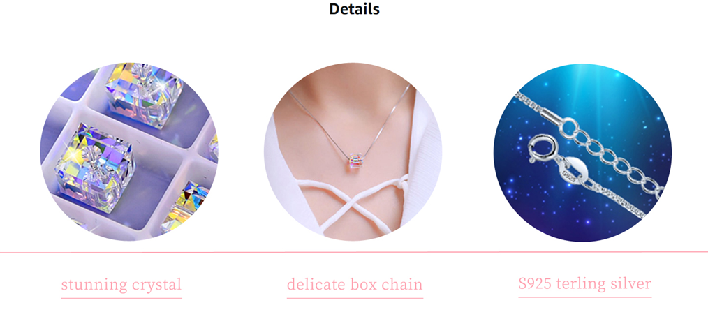 MATERIAL & SPECIFICATIONS S925 sterling silver chain and crystal.pendant height:0.98 inch,width:0.69 inch,item Weight:0.24 ounce;High quality S925 Sterling Silver 18"(46cm) and 2"(9cm) Extended adjustable Chain.