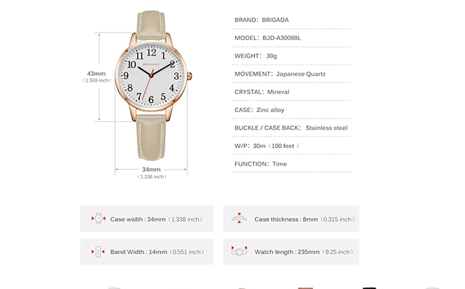 • ❤Round white dial with legible Arabic numeral scale make the timepiece keeping good time. Red second hand is elegant and eye-catching, rose gold case comes with soft and wear-resistant beige watch band, love at first sight.
