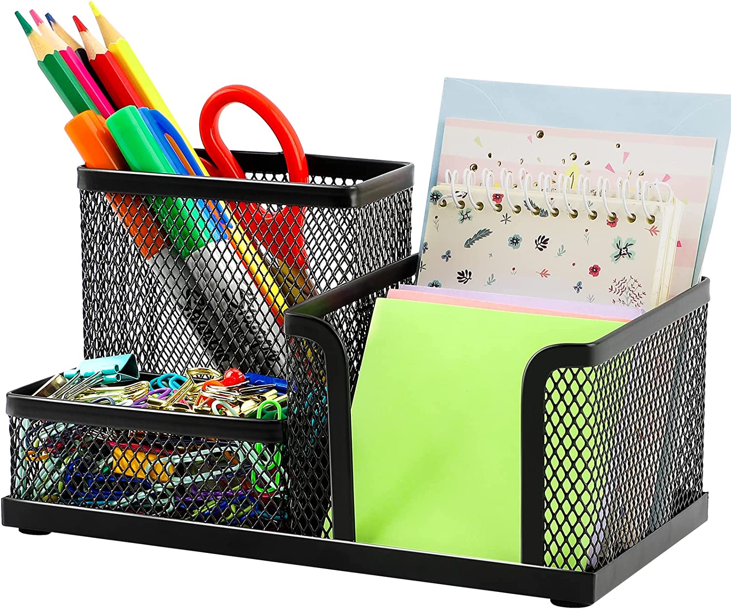 Durable Material: The desk organizer is made of sturdy mesh metal, it has solid metal base. The smooth ABS coating and rounded edges make it attractive.