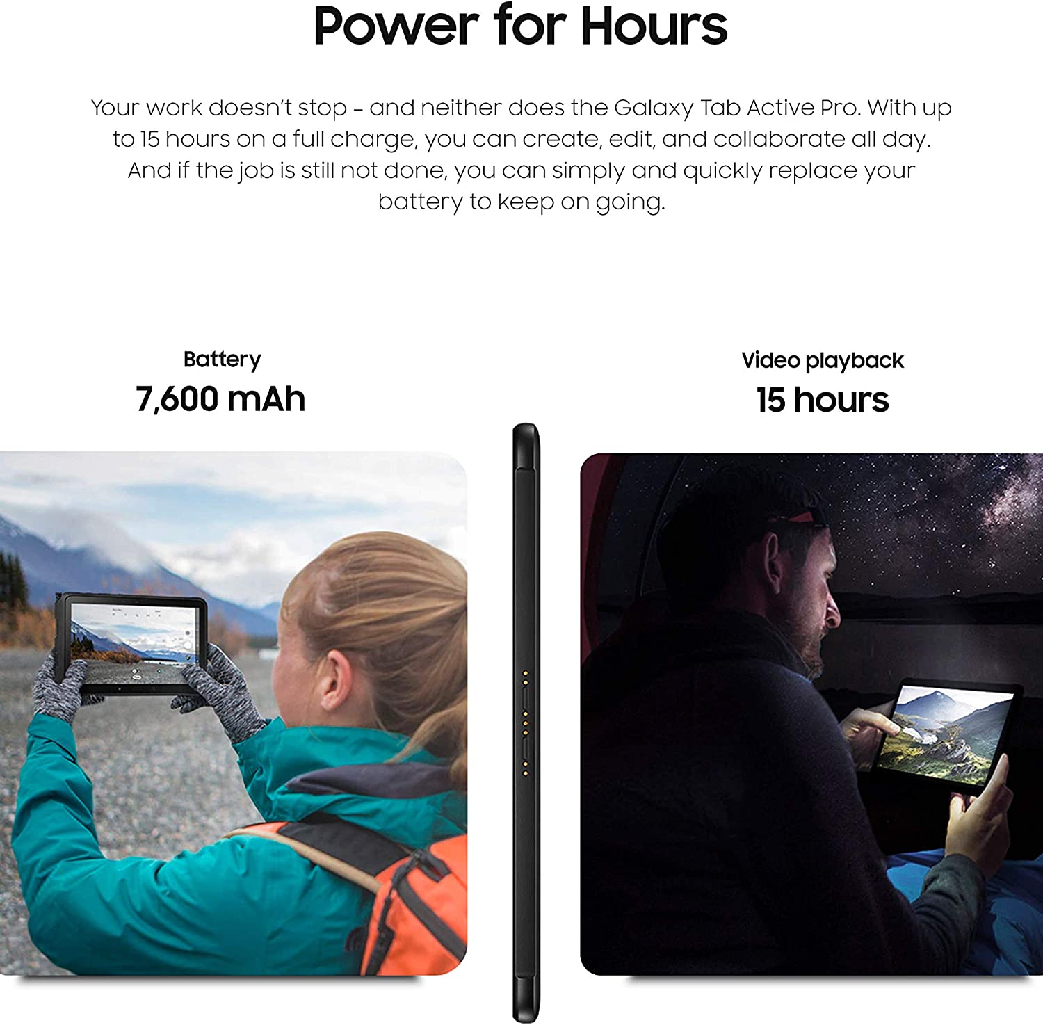 Built to withstand rough weather conditions with military-grade defense, the Samsung Galaxy Tab Active Pro tablet is designed to help you achieve the best industrial performance. The Galaxy Tab Active Pro is MIL-STD-810G and IP68-certified - tough enough.
